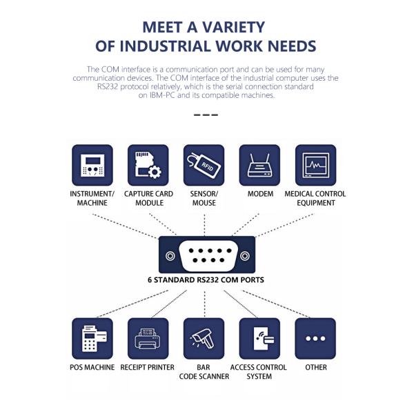 | Backside ports | 1*HDMI, 1*RJ45 LAN,, 4*COM, 2*Wi-Fi antennas, 2*USB3.0,2*USB2.0,1*VGA | | | | |||